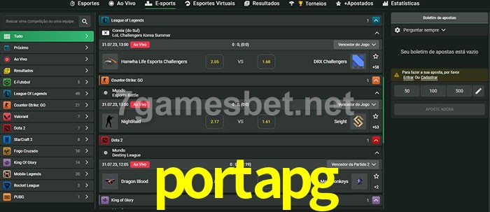 O portapg oferece uma grande seleção de opções de apostas em e-sports com probabilidades competitivas